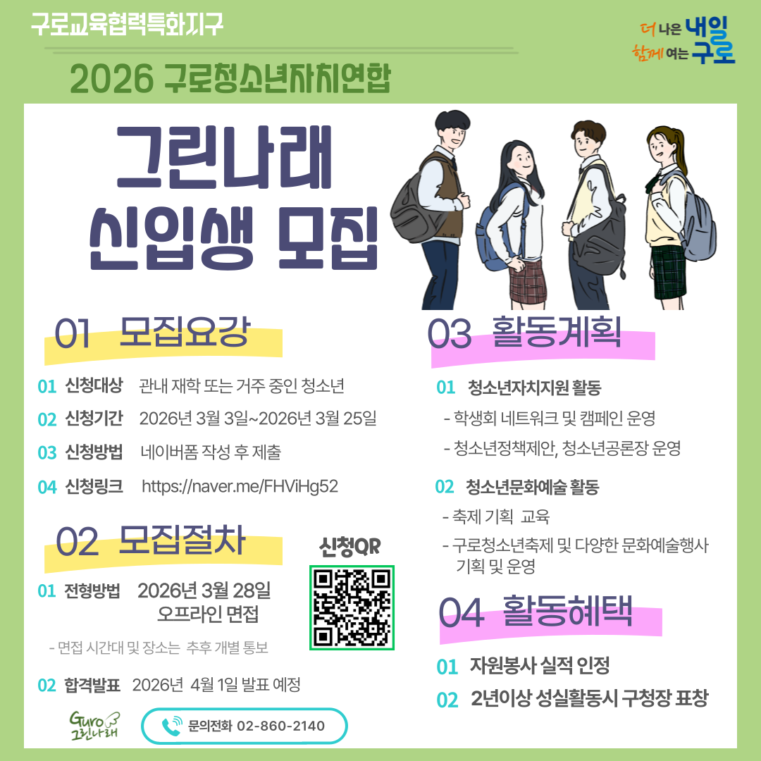 2026년 구로청소년자치연합 그린나래와 함께 할 구로구 청소년을 모집합니다~!