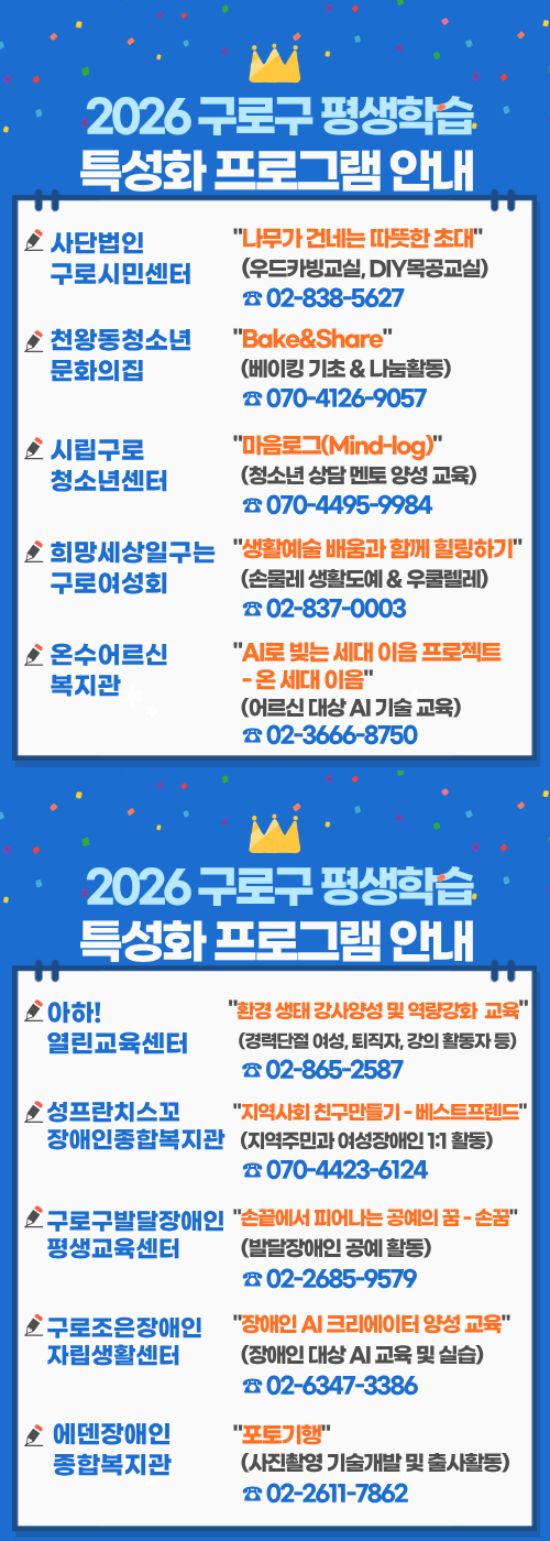 2026년 구로구 평생학습 특성화 프로그램을 운영합니다. (4월~12월)