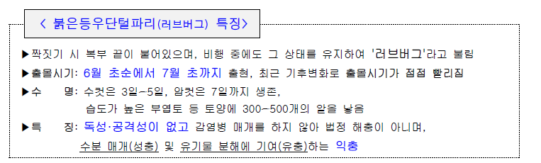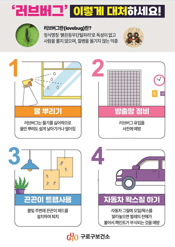 공지사항 홈 보건민원 공지사항 전자점자뷰어보기(새창 열림) 전자점자파일다운로드 인쇄 공유하기 공유하기 페이스북 X 블로그 닫기 조회수 324 작성일 2025년 05월 15일 17시 38분 15초 보건소-보건민원-공지사항 상세보기 - , 제목, 내용, 파일, 조회수, 작성일의 정보를 제공합니다. 러브버그(붉은등우단털파리) 바로알기 및 대처방법 파일 jpg 파일 러브버그대처방법.jpg 파일다운로드 미리보기/음성듣기 hwp 파일 러브버그바로알기1.hwp 파일다운로드 미리보기/음성듣기 목록 이전글 구로구보건소 무료 말라리아 신속진단검사 안내 다음글 2025년 관내 약업소 및 마약류취급업소 온라인 자율점검 실시 안내