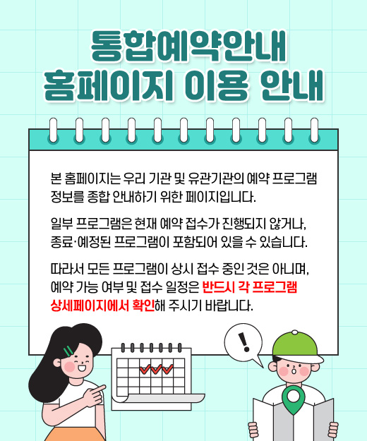 구로구의 기관별, 주제별, 연령별 다양한 예약 안내를 한곳에서 쉽고 빠르게 확인하실 수 있습니다.기관별·주제별·연령별로 선택해 필요한 예약 정보를 바로 확인해보세요.