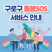 갑작스러운 질병이나 사고 등으로 돌봄이 필요할 때 ʿ구로구 돌봄SOS 서비스ʾ를 통해 가사 지원, 병원 동행, 식사 지원 등 맞춤형 돌봄을 받으실 수 있습니다. 동주민센터 방문 또는 전화, 서울복지포털을 통한 온라인 신청이 가능하오니, 긴급한 돌봄이 필요한 구로구민 여러분의 많은 이용 바랍니다.