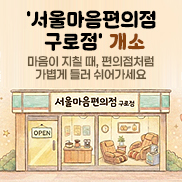 마음이 지칠 때, 편의점처럼 가볍게 들러 쉬어갈 수 있는 ‘서울마음편의점 구로점’이 화원종합사회복지관 4층에 문을 열었습니다. 소통존과 힐링존으로 구성된 이 공간은 구민이라면 누구나 무료로 이용하며 마음과 몸을 편안하게 힐링할 수 있는 쉼터이니, 많은 관심과 이용 바랍니다.