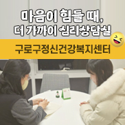구로구에서는 구민을 위해 심리상담실 ‘구로구정신건강복지센터’을 운영하고 있습니다. 마음이 힘들고 지칠 때, 심리상담 전문가와 함께 자신의 마음을 이해하고 돌보는 시간을 가져보시기 바랍니다.