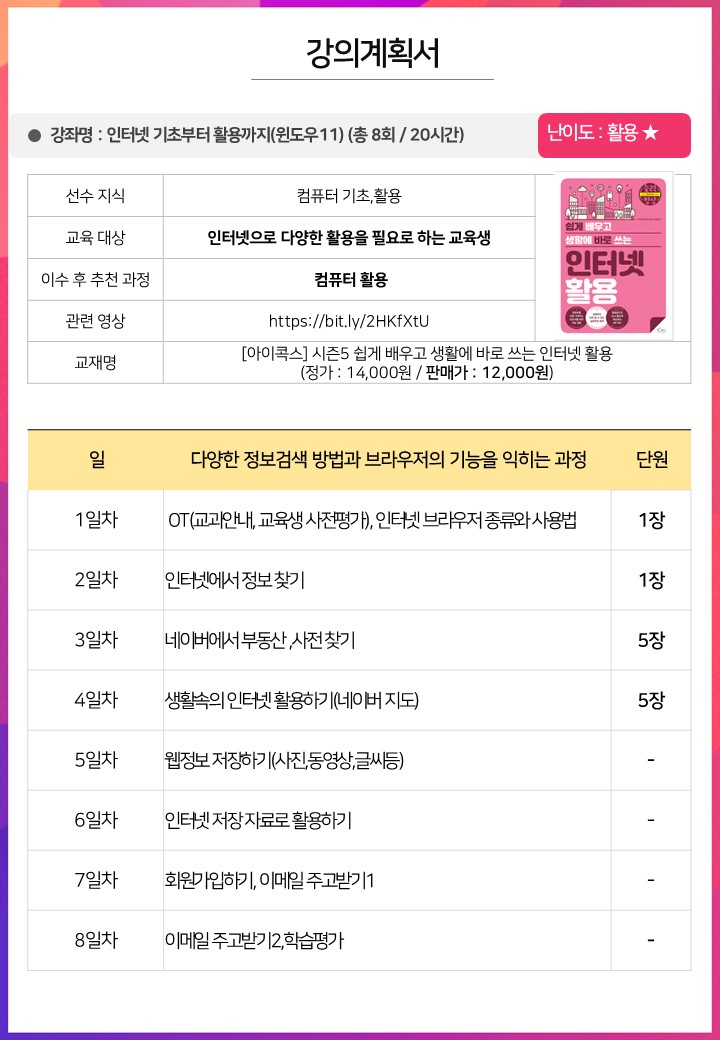 | 인터넷 기초부터 활용까지(윈도우 11) 신청자:16/24명 , 대기자:0/12명 | |||