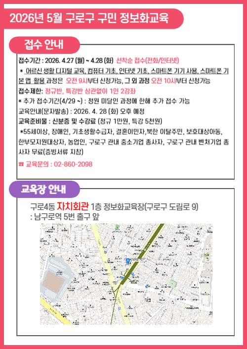 | 수강대상 | 구로구민 누구나 | ||