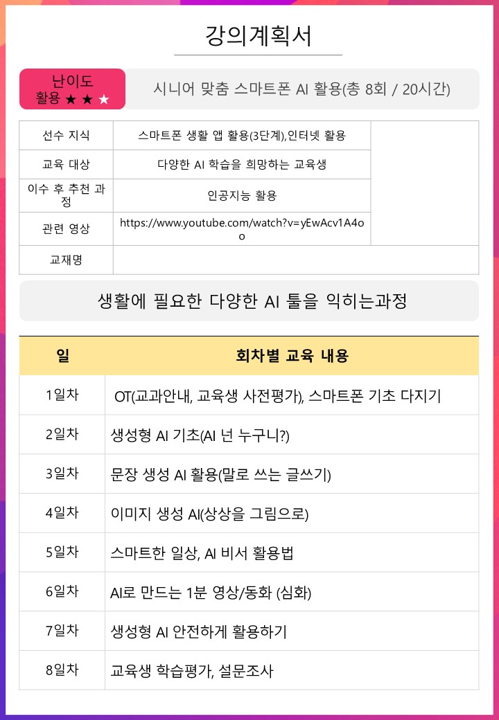 | 10시 접수_시니어 맞춤 스마트폰 AI 활용 신청자:0/30명 , 대기자:0/15명 | |||